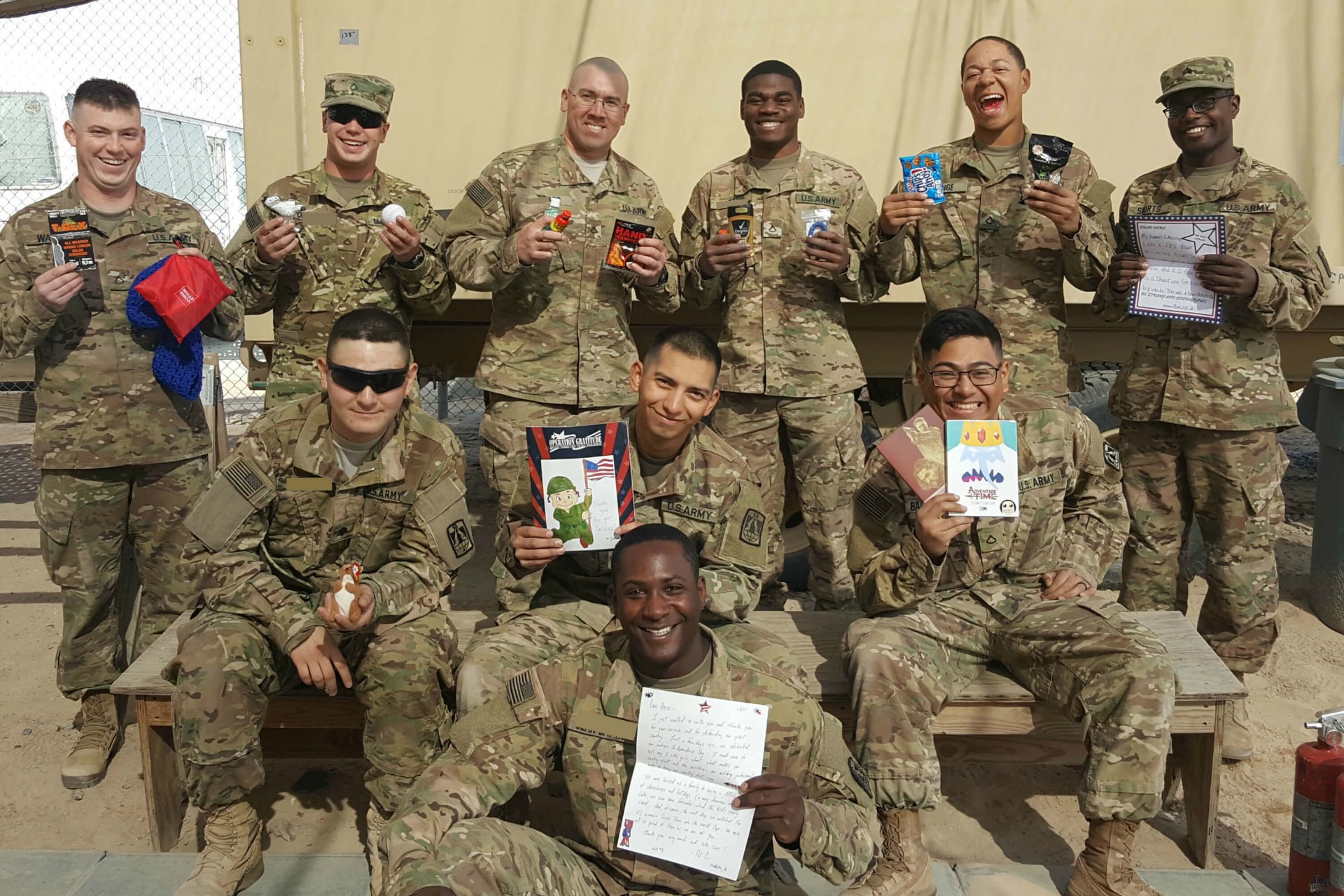 Every year thousands of service members are deployed around the world, separated from family, friends, and the comforts of home. We support Soldiers, Sailors, Airmen, Marines, Guardians, Coast Guardsmen and National Guardsmen serving at home and abroad with our care packages and other meaningful acts of gratitude.